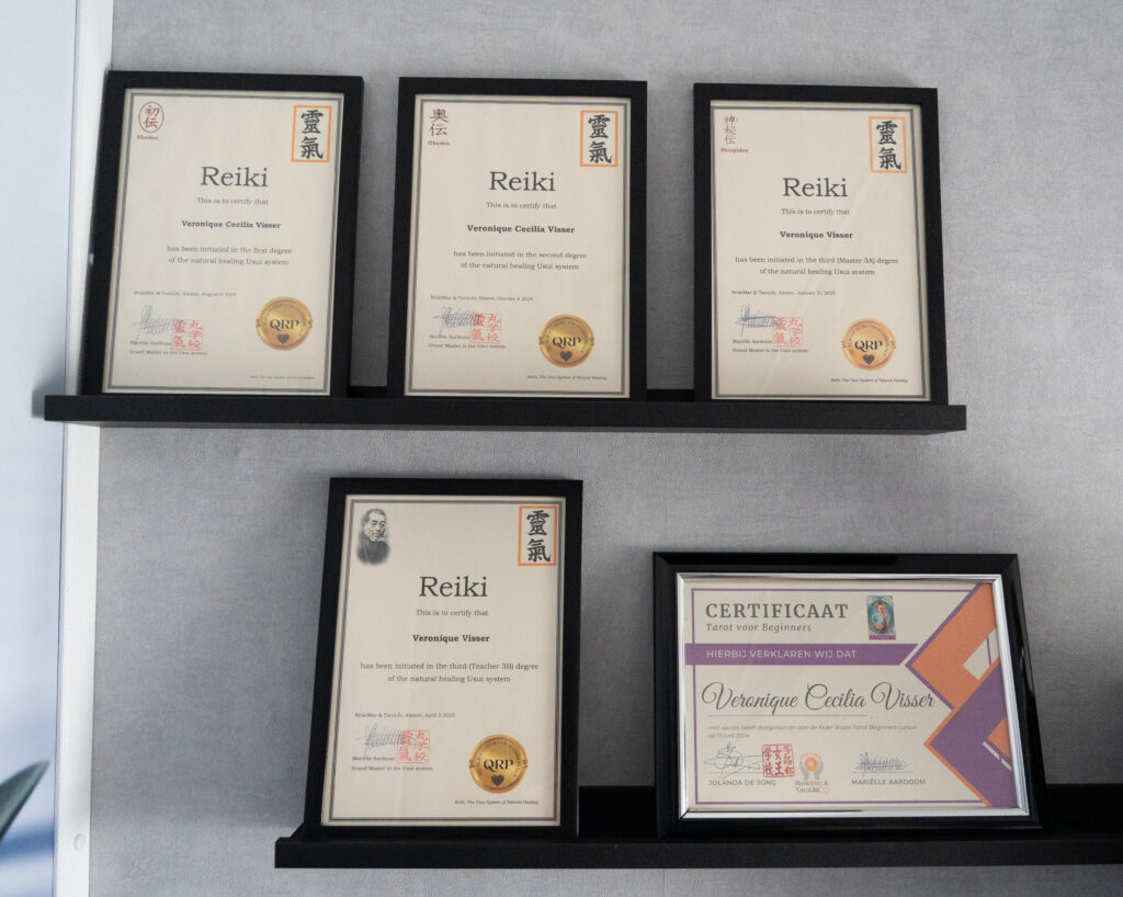 Hieronder alle certificaten die Reiki van Veer heeft behaald.